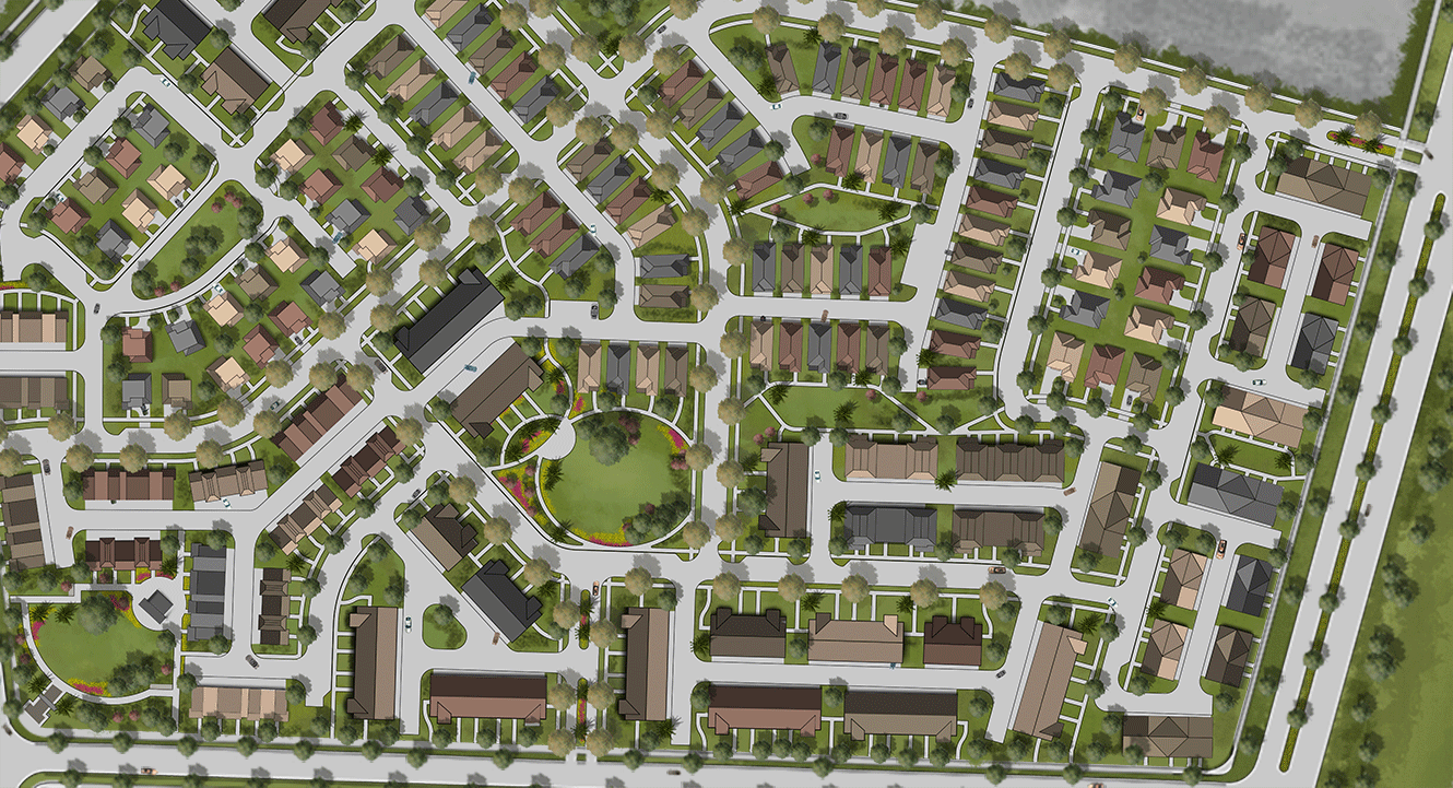 3. Give Builders Space – A confetti approach to variety assumes that builders and product are mixed on a lot-by-lot basis. This is difficult to sequence and orchestrate. Instead, provide a blocking pattern that will give each builder a mix of product types. This establishes a critical mass for each phased take-down, while incorporating variety and interest throughout the neighborhood.