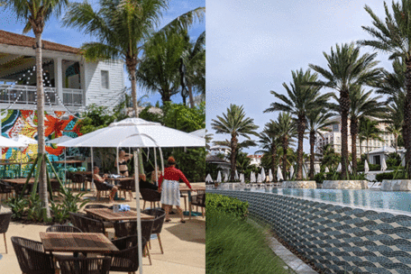 Baha Mar is designed to be an authentic Bahamas resort experience, inspired by traditional architectural designs local to the area, and the Baha Bay Water Park needed to reflect that aesthetic, as well. The design incorporates elements in the landscape that are representative of the local stone character and plant palette. This aesthetic is evident in the natural stone textures in the water features and shell patterns in the walkways, the use of natural stone within the infinity pools, and custom art on the buildings, completed on-site by local artists.