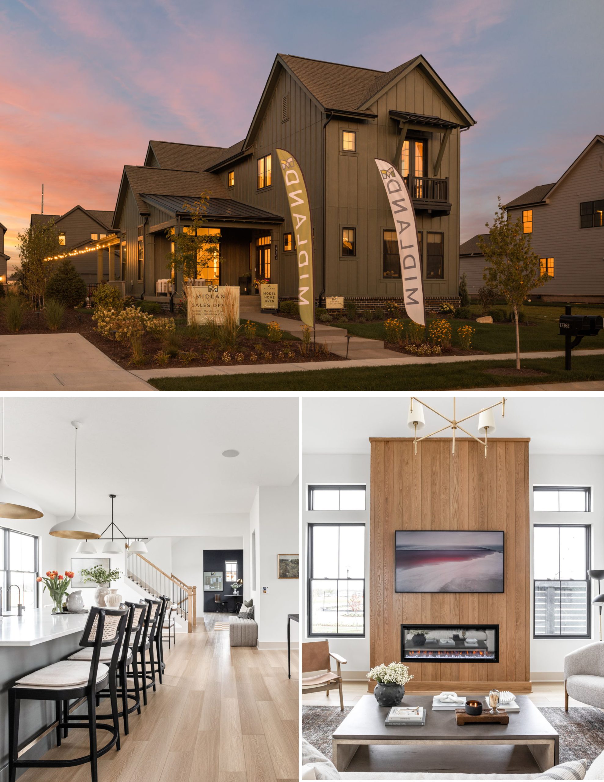 Midland is a scenic suburban community in Westfield, Indiana, composed of single-family detached homes that boast open floor layouts, seamless indoor-outdoor living, and vibrant front yard spaces. With alley-loaded homes, it was imperative to design them in a way that encourages active front living and provides ample outdoor areas. This was achieved by incorporating spacious front porches and convenient side lanai spaces, effectively maximizing the homes’ potential within their compact footprints.