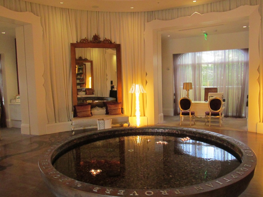 It gets better. The Spa has signature cupcakes, but the comp Champagne is a real treat. Nothing says pampering like a glass of champagne BEFORE a treatment. The chill spaces are both indoor and out, gauze curtained inside and outside a full array of cabanas, pools, swings over splash areas, all sorts of stuff to indulge in.