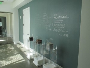 Back in Spa-Land, the men’s and women’s areas reflect a very whimsical interpretation of escape. Calm yet unexpected…over stimulated, in an escapist way. Does anyone remember the Philippe Starck Scottsdale Mondrian? It is in that kind of escapist, hard to picture but in a very good way.