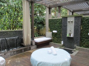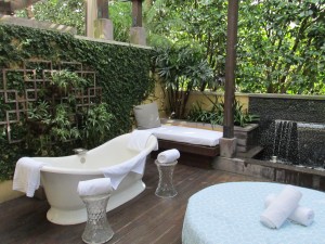 Super treatment complete, back to the chill zone, where WTS had arranged for a private villa, outdoor terrace, personal hot tub, swings, lush landscape shading all of it and more champagne. I was assigned the ‘Villa Flirty’