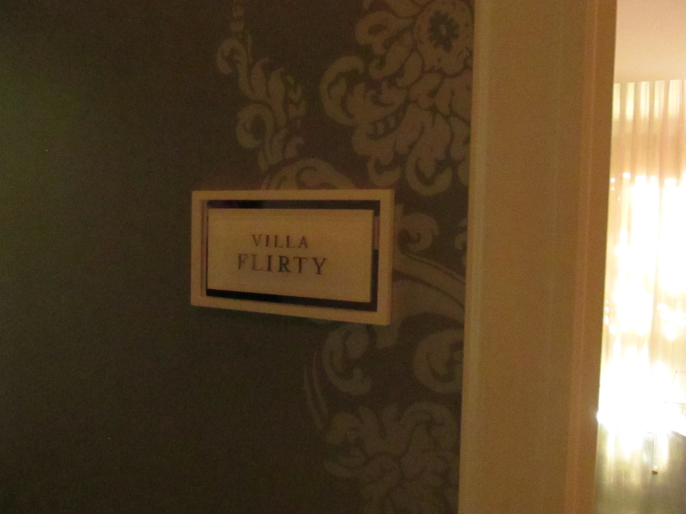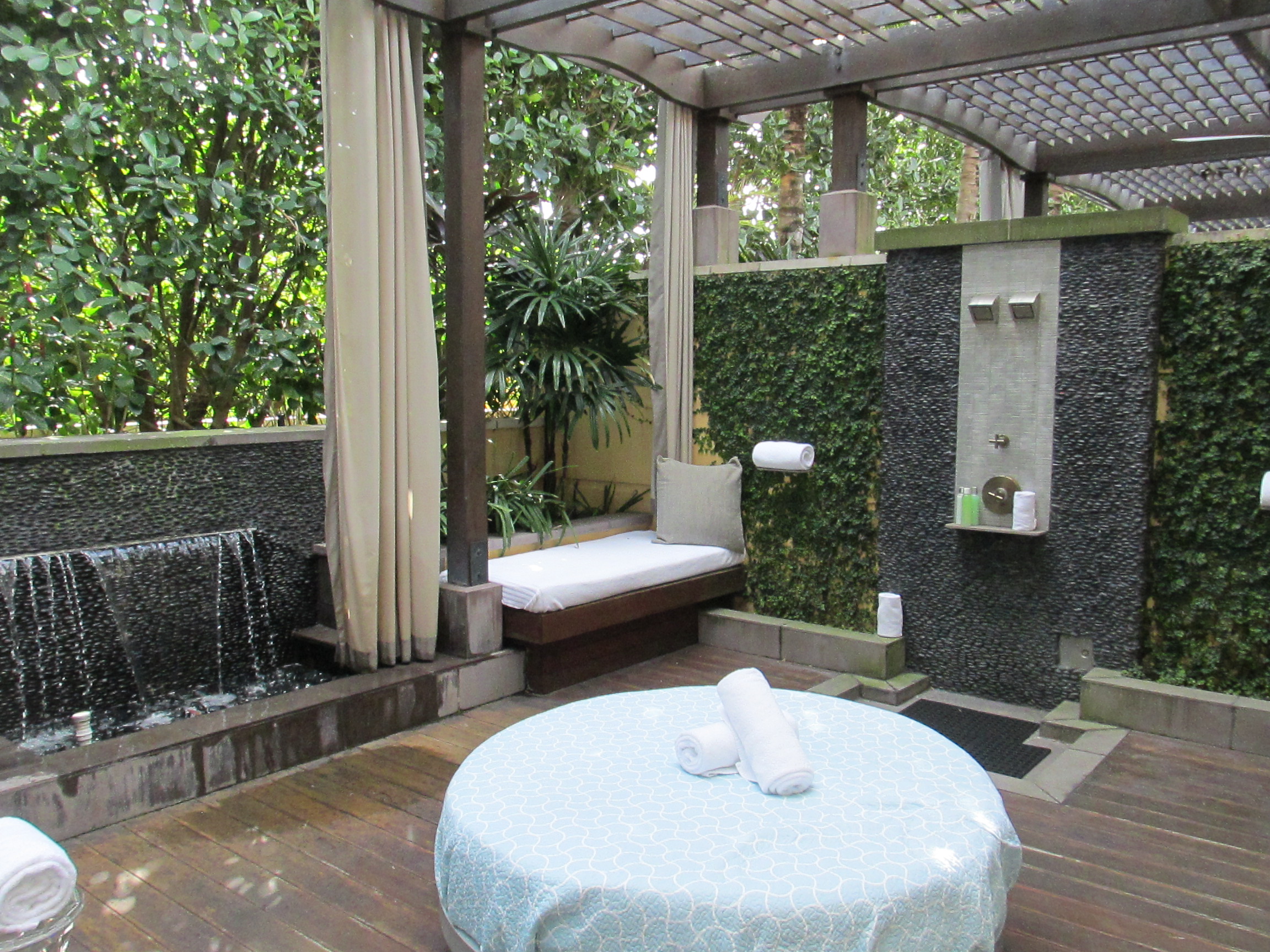 Super treatment complete, back to the chill zone, where WTS had arranged for a private villa, outdoor terrace, personal hot tub, swings, lush landscape shading all of it and more champagne. I was assigned the ‘Villa Flirty’