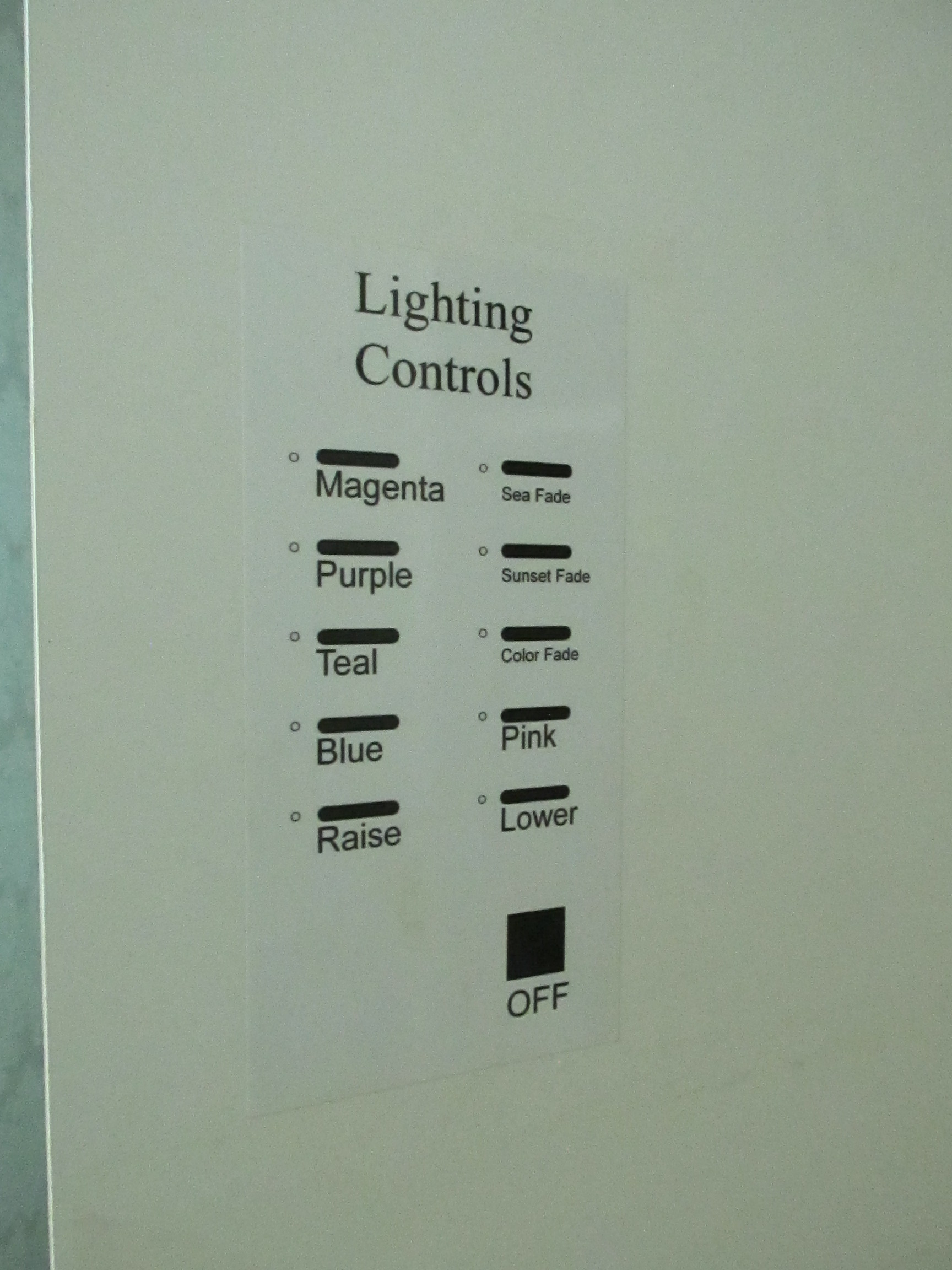 Call to action, Treatment Time. The rooms all have customizable LED lighting depending on your mood, I didn’t ask if you could plug in a personal music player, but should have, wouldn’t surprise me, every spa should have this capacity.