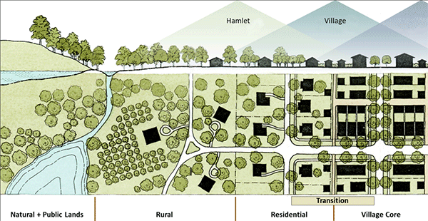 Resistance to development was reversed during an “A-HA” moment when it was explained that the proposed development nodes, known as “villages,” may take 20 to 50 years to be developed or even 100 years to be fully established. The community realized that by being strategic about where future development occurred, it could increase the likelihood of bringing valued services to the County.