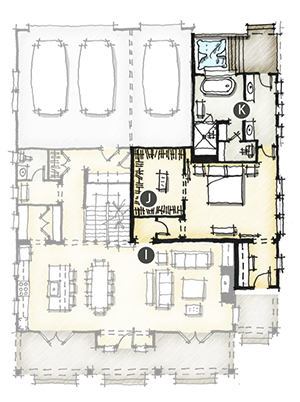 J. A master down option is provided with ample closet space.