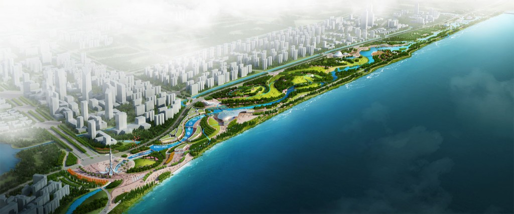 The influences of the Yangtze River and its circuitous journey are an inspiration for the park space. It is another thread that unifies the site. It gives meaning and purpose to each zone throughout the park. Four distinct zones are highlighted including an upper plateau, canyons, lakes and delta. This gives purpose to how the existing internal waterway can be shaped and how it lends itself to the natural route of bio-filtration.