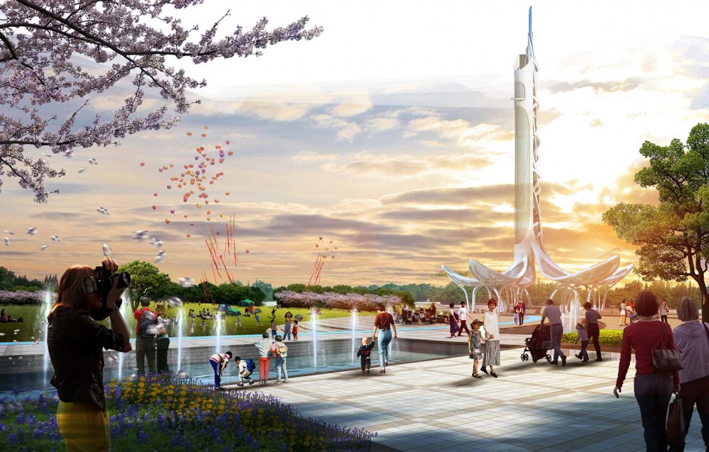 The culture of the area is represented as a thread. It is illustrated in the big idea of the park and in the details of paving, plant patterns and architectural elements. The thread unifies all the destinations within the park. Its beginning is the Thread Tower, which becomes the icon for the entire district. The tower symbolizes the past of the textile industry and the future of new technology. The Thread Tower, along with the supporting elements and activities become a clear demonstration of the brand for the new district.