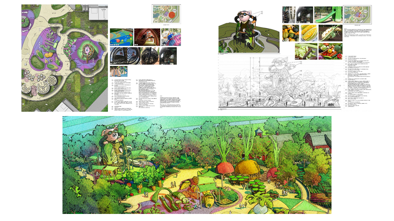 Leverage the Story Throughout the Park. Vertical features and elements should tie to the concept and the idea. Identify icons to foster understanding of the story and celebrate the vision.