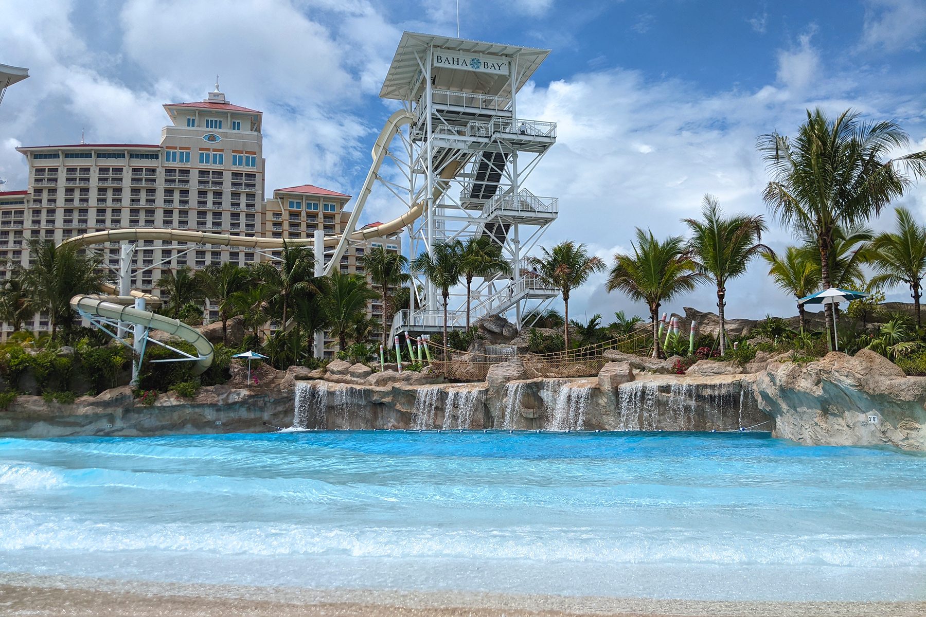 Baha Bay Water Park stretches along Nassau’s Cable Beach, with multiple food venues, an outdoor casino, twenty-four water slides, a 500,000-gallon wave pool, and a surf simulator, among other attractions. It draws from island historical references and aesthetic influences featuring Island Contemporary, Georgian, and Bahamian Bold and Pastel design, creating an authentic landscape and exceptional experiences for both guests and locals, redefining the Caribbean vacation through folklore and fantasy.