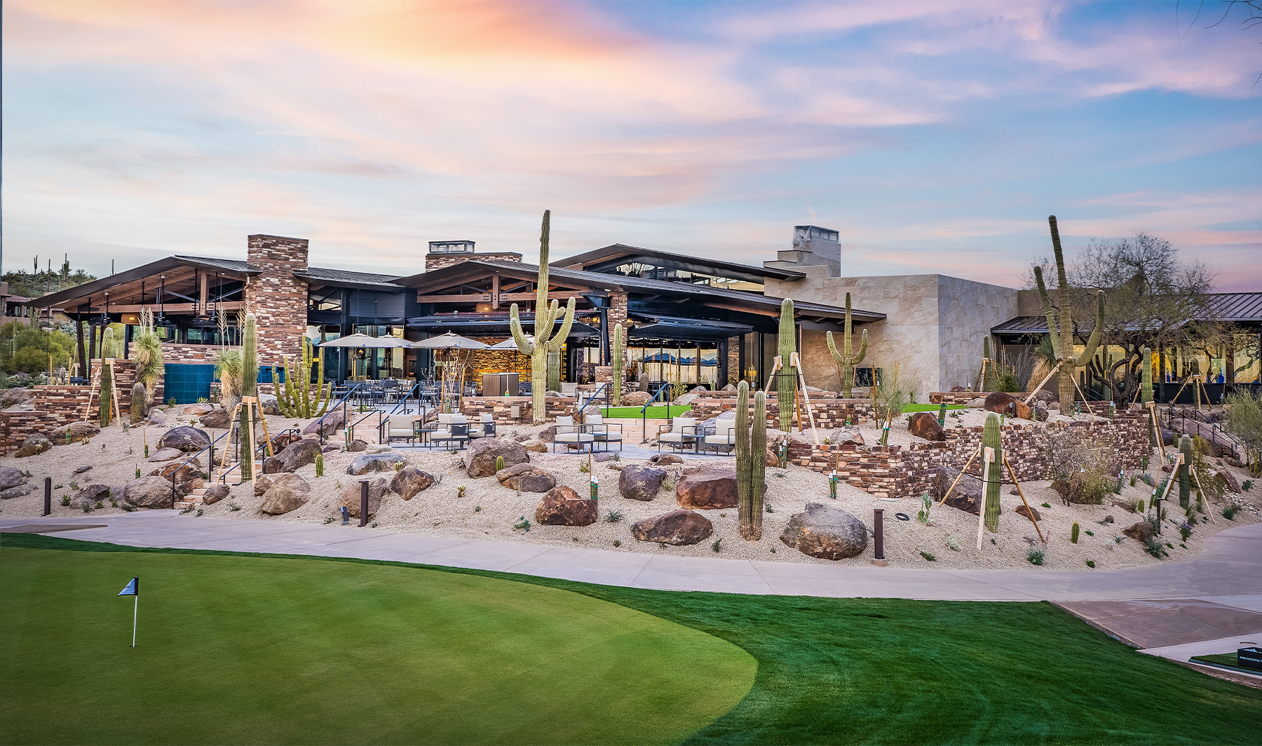 This exclusive club in a desert environment is carefully integrated into the site, with concurrent architecture, site, and landscape design. The Club features an expansive covered outdoor space with a dining patio and fireplace chimney/feature wall. The main level indoor space includes a golf pro shop, golf pro office, golf merchandise storage, fitting room, locker rooms, garden lounge, restaurant, members room, and kitchen. Multiple courtyards and patios are hubs for socializing and entertaining.