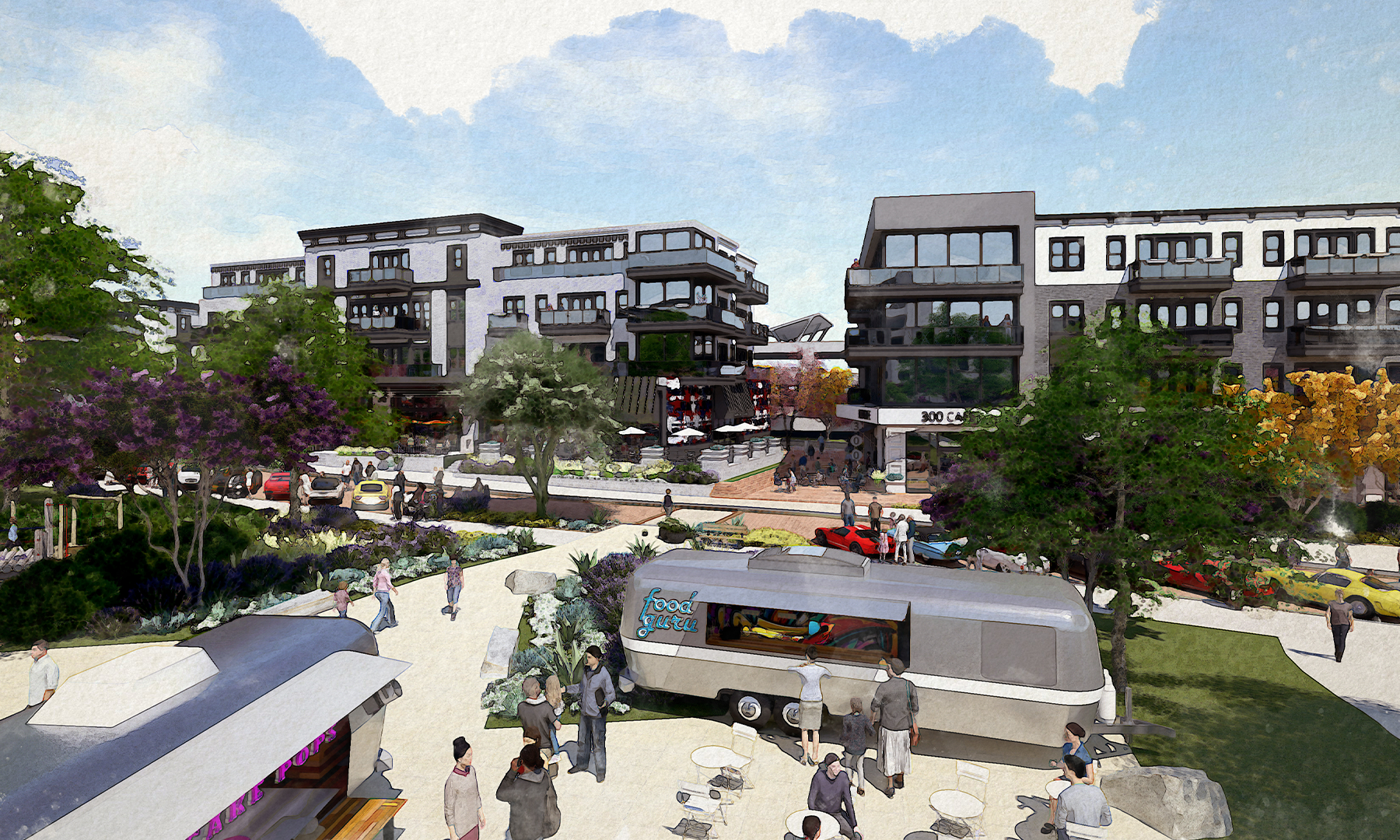 The Square at Lakeway is a new mixed-use town center developed in partnership with the City of Lakeway. It features a 5-acre public park surrounded by residential areas, retail shops, restaurants, and a destination hotel and is designed to host a variety of community events, including concerts, classic car shows, art fairs, and farmer’s markets. The residential options include stacked flats, two and three-bedroom apartments, and efficiency units aimed at providing affordable housing. This diverse housing strategy is intended to enhance daily activity and encourage interaction within public spaces. Additionally, careful traffic planning on Main Street ensures a balance between vehicle movement and pedestrian safety, fostering a vibrant and engaging urban environment.